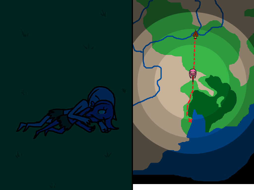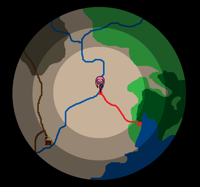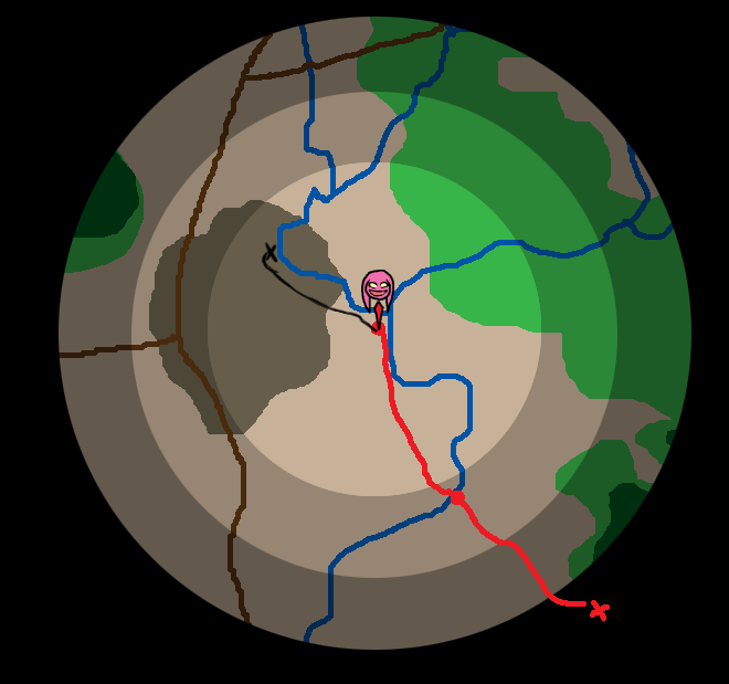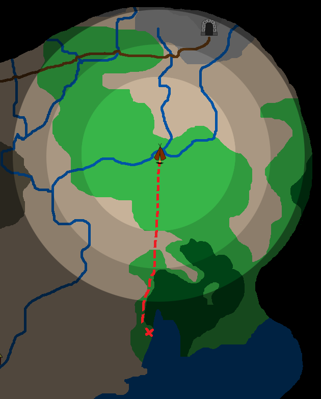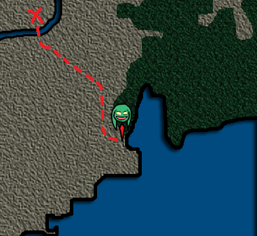 D) Looks like there is another 90 degree bend in the river up here. Could be indicitive of another river joining the current one. If that darker terrain (I am presuming it to be rocky hills?) is benificial to tower building efforts, then this is would be an excellent spot. If moving north at all, let's see what else of this location we can percieve.