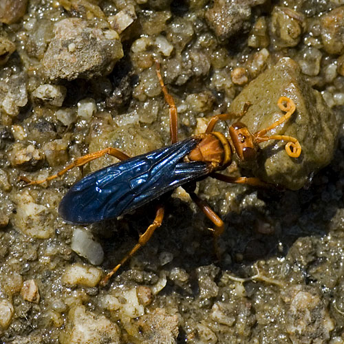 Scars indicates the other golden ant beside him, her resplendant wings creating a prismatic pattern on the ground beneath her. In spite of this majestic appearance, her response.... is not quite so noble. She seemed to have been busy staring at Scars Of Yesterday, and was not quite prepared for introductions.