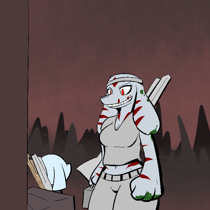(2) Aggressive defense. Make the war hive pay for every inch of territory they try to claim inside the spire. Protect your friends by going on the offense- outright offer alliance to the salakai and organize a much more aggressive guerrilla fight. This is more risky, exposes you to more harm, and only makes sense if you feel the war hive really needs to pay, or you've decided the facility (and those inside it) really don't deserve what's coming. Of course, this places you at risk, and the salakai's got it's own army anyways. Might have long term benefits if the salakai's intentions aren't some crazy world domination scene.