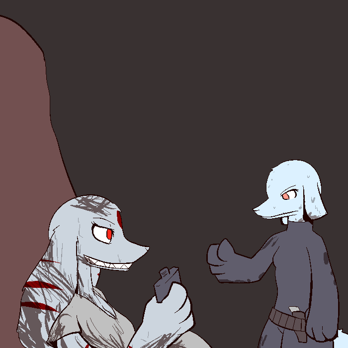 (3) Truth / alliance. If you're going to go with her, you need a reason. Right now, Rokoa wants to know what the hell her Queen is thinking. If you're going with her- it needs to be because you want to know the truth behind this whole damned mess. And because you think Rokoa could use a stealthy ninja to back her up if this goes to shit for her. You need to be motivated by truth and personal loyalty- and you need to express that if you expect her to consider taking you along at all.
