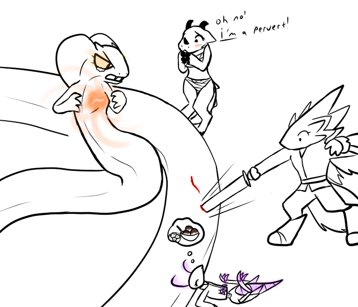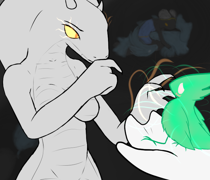 "She's no mere peon like yourself. The master is a great demonic serpent, capable of melting your heart and making you slave to your very desires. She'd have you eating out of her hand before you can even blink."