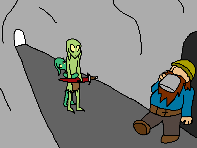 And finally I think the main hall needs a bit of decoration, A statue should serve nicely, and what best to inspire allies and terify enemies then a picture of two fierce goblin warriors (Stozo and Ozud) worshiping the ground around the feet of Amxu The Great: Goblin Leader?
