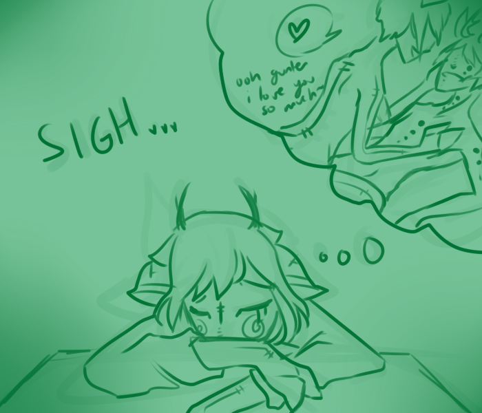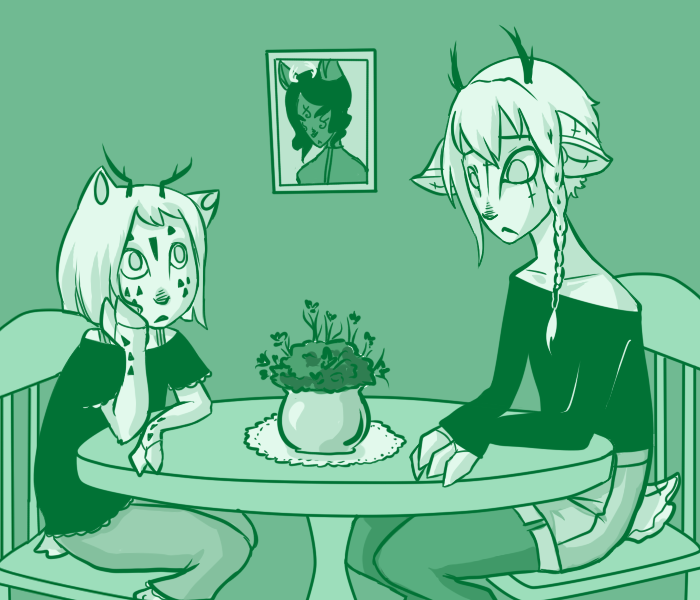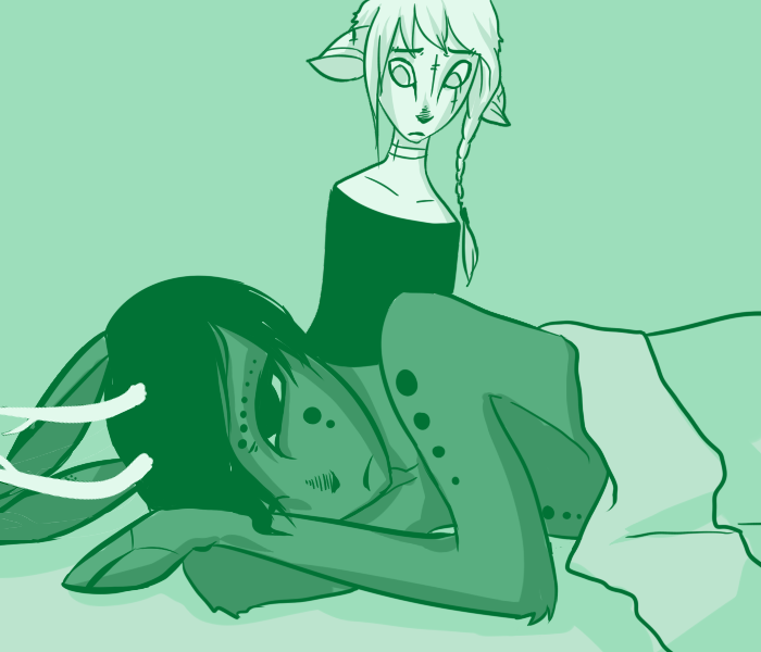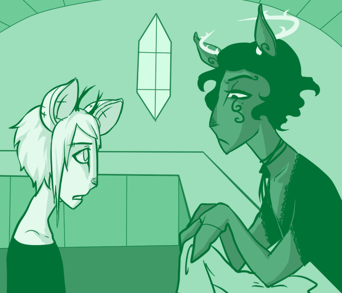 "It's nothing. I just don't feel well. I feel like I'm dying and I can't see it getting any better." Ti stares blankly at the ceiling, tir eyes flat and glassy. "Even if there was a cure, you'd never find it. You don't even know what you're looking for."