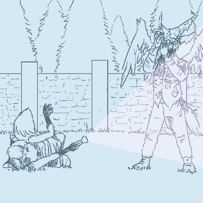 "Well, Harry's just a cold-blooded bastard who wants to raise his demonness. My friend was just recently taken by said demonness...and I followed them here to this village. It's where it all started." Rina proceeds to tell the officer about the incident, Mr. Farrow, the geocaching trip, everything.