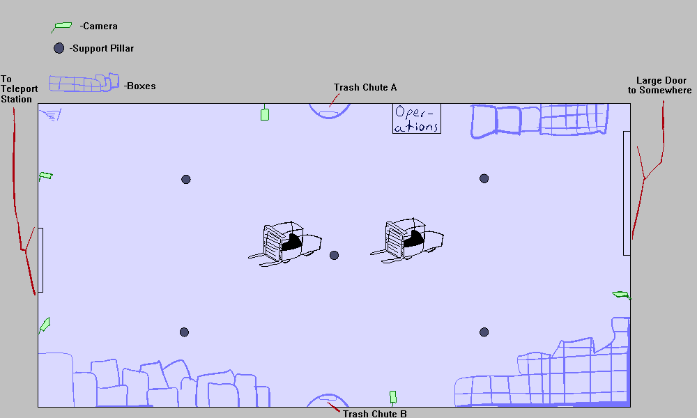 If there are any terminals or records, it is behind this door labeled Storage Operations. And behind lock and key. It looks like there is a slot for a keycard, a retinal scan, and a numerical password. Either there are different options, or this level of security is borderline paranoid. There are a couple of forklifts, however, and this place is far from full capacity.
