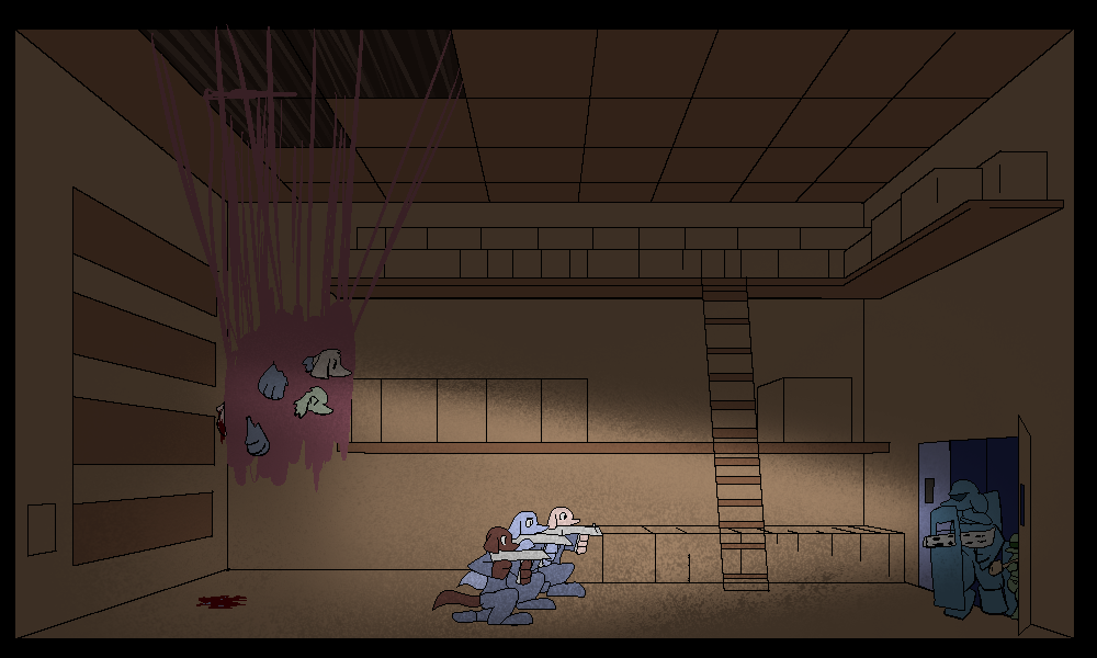 Oh right, come to think of it, our very first action should be throwing smoke grenades in there.