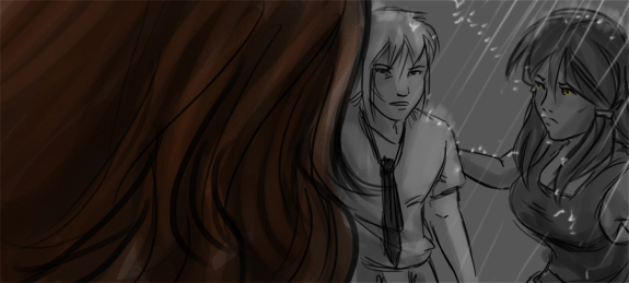 This part of the story was all about forming the first relationships of the story. Aetan is treated less like a person and more like the Legislater he is - which is exactly what he wants. This in turn makes him less tolerant of Alex (Droopy) and the Chief later on, and in general more irritated with events. Ram's saving of the lone survivor ensured the destruction of the ship's population later in the story, but also a clear explanation of what had happened. It also gave Aetan the chance to project himself onto the survivor in a way that will be clearer later in the story. The "corpse path" took away an early encounter with the murderous survivor and led to Jael. Jael's first interaction with Ram actually benefited from his inferred stupidity, as it was immediately clear he was not a threat. Otherwise, Ram risked being unconscious for almost all of Part 3.