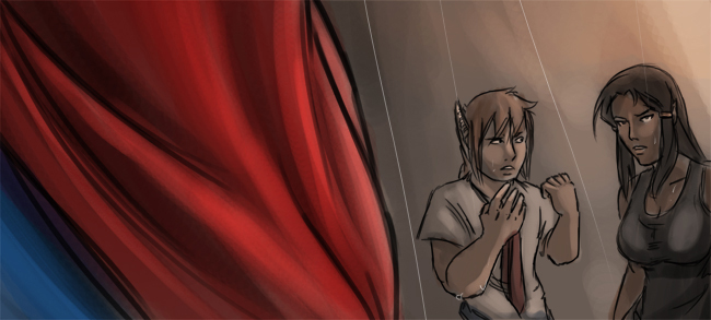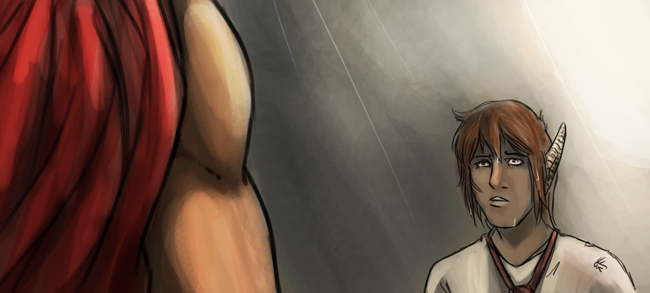 The decision to go outside changed the initial encounter point for Aetan and Jael from inside the ship to the elevator, and also introduced Ram to Aetan earlier. Jael's escape prevented many complications with Aetan. She would have prevented this meeting either way, but with greater or less suspicion raised about it. This was a middle of the ground reaction. Ram's act diffused the situation and helped maintain Jael's secrecy, and made her a little more fond of him. It also prevented an early confrontation with the soldier. It also enabled Ram to follow them into the ship, rather than having to find his own way, and potentially estranging Jael in the process. This also led to Jael and John's optional dialogue, which established John early, as well as some of Jael's backstory, and her internal conflict with her life as a soldier. This took the place of another scene of Ram on the elevator, speaking with Droopy. John is now aware of Ram, which will come up in Chapter 2.