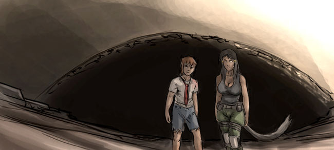 Suggestions during this brief part of the story ensured Jael had a difficult fight. However, her actions were fast enough to prevent complications later on with the other soldier, who would have been an even bigger problem. Her reaction to run from the "zombie" set up a part of her own backstory. Suggestions to fight the supposed corpse would have stalled her reaction and resulted in a short scene later, on the elevator, as she reflected on it. The vomit scene is all you guys. Jael shows empathy with Ram, carried over from earlier interactions. She could have ignored his injuries and separated from Ram for the time being. Ram would have passed out in several variations of this part's end, depending on what Jael does and how much she interacted with him.