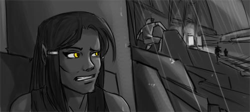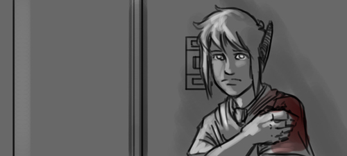 The decision to go outside changed the initial encounter point for Aetan and Jael from inside the ship to the elevator, and also introduced Ram to Aetan earlier. Jael's escape prevented many complications with Aetan. She would have prevented this meeting either way, but with greater or less suspicion raised about it. This was a middle of the ground reaction. Ram's act diffused the situation and helped maintain Jael's secrecy, and made her a little more fond of him. It also prevented an early confrontation with the soldier. It also enabled Ram to follow them into the ship, rather than having to find his own way, and potentially estranging Jael in the process. This also led to Jael and John's optional dialogue, which established John early, as well as some of Jael's backstory, and her internal conflict with her life as a soldier. This took the place of another scene of Ram on the elevator, speaking with Droopy. John is now aware of Ram, which will come up in Chapter 2.