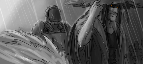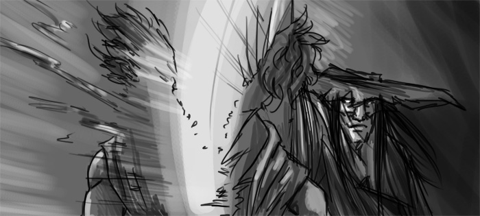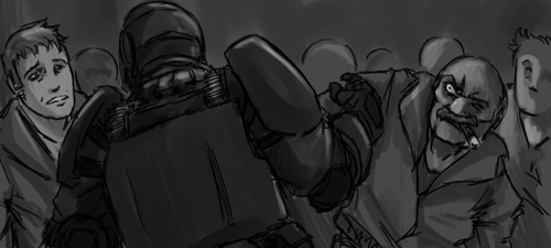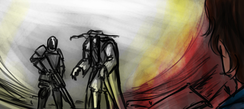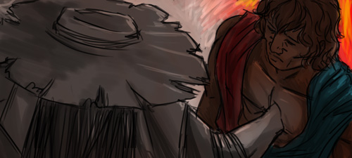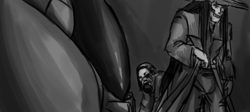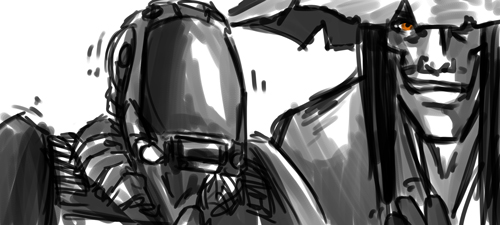 This part of the story was all about forming the first relationships of the story. Aetan is treated less like a person and more like the Legislater he is - which is exactly what he wants. This in turn makes him less tolerant of Alex (Droopy) and the Chief later on, and in general more irritated with events. Ram's saving of the lone survivor ensured the destruction of the ship's population later in the story, but also a clear explanation of what had happened. It also gave Aetan the chance to project himself onto the survivor in a way that will be clearer later in the story. The "corpse path" took away an early encounter with the murderous survivor and led to Jael. Jael's first interaction with Ram actually benefited from his inferred stupidity, as it was immediately clear he was not a threat. Otherwise, Ram risked being unconscious for almost all of Part 3.