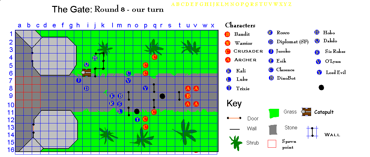 ...Dakdo takes cover at i6. Hmm. I don't have the supplies to build sturdy shields against falling arrows, or anything that would get our slow bruisers to the enemy faster.