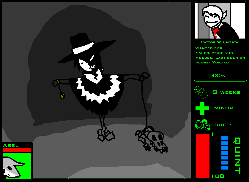 [Crone] He is not a murder weapon, he's a... he's a genie of some sort. He can get you anything or preform any task he is capable of- he only asks for something of equal value, whether it's of personal value or monetary value.