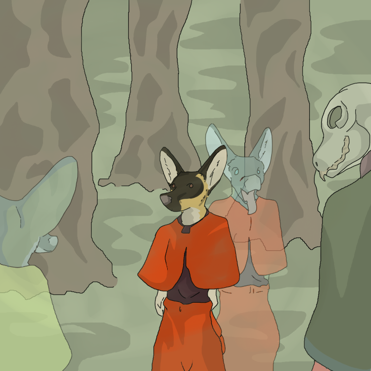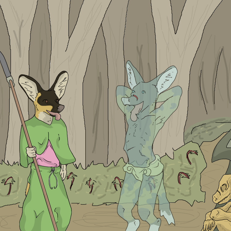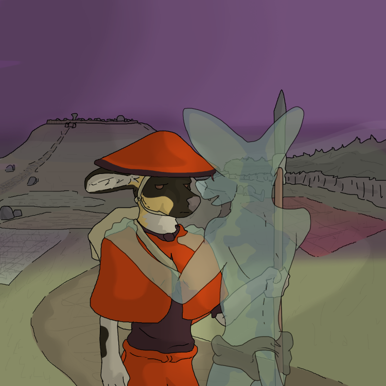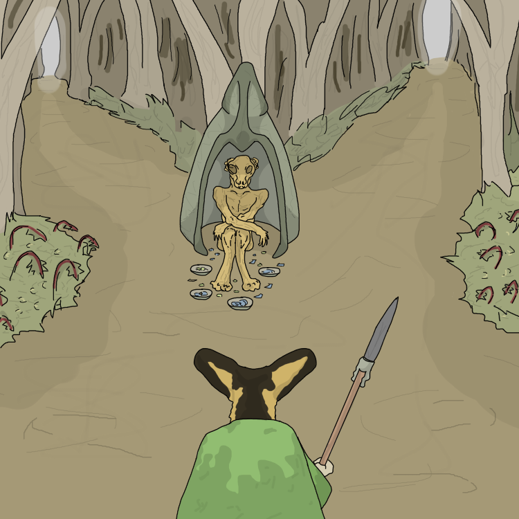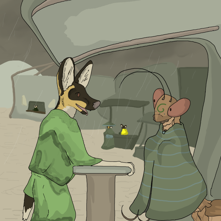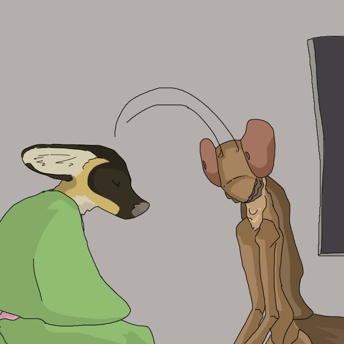 She’s a bug person. They don’t have a remnant of their own—their kind just sort of find what homes they can. She can speak our language pretty well, but she’s a merchant, so that isn’t, like, a surprise. When my family still had some money I had a tutor and I learned some of the bug language. I can’t speak it very well, but I can understand it okay.
