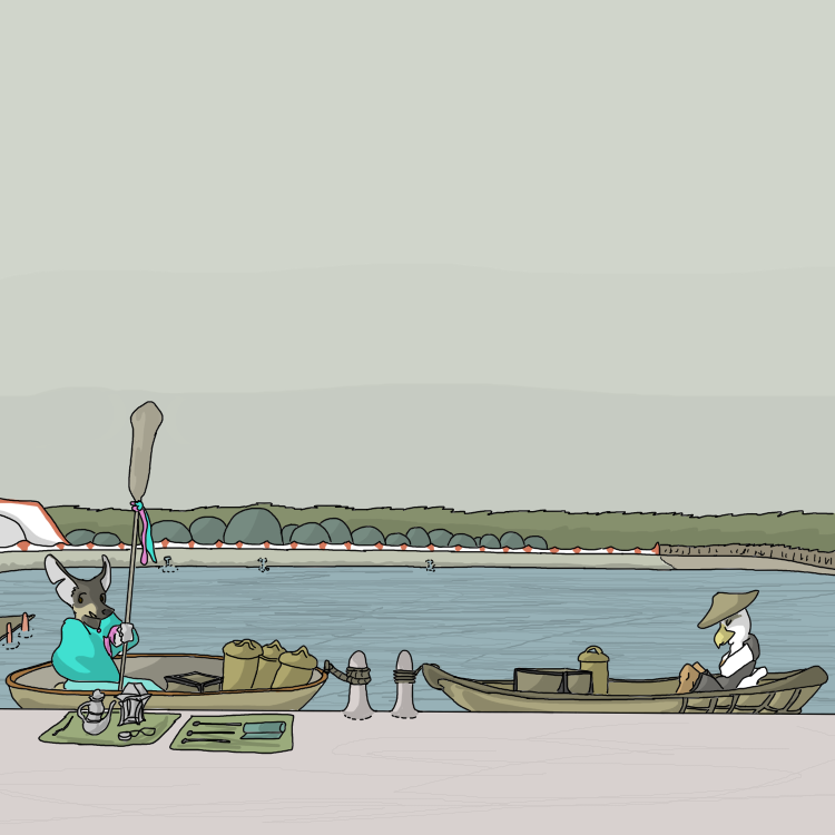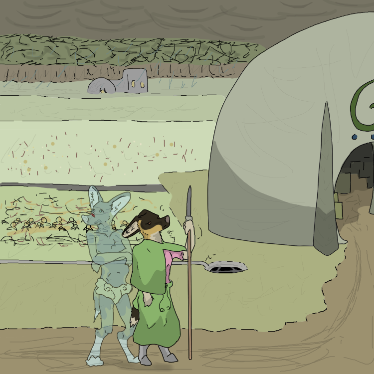 With my clothes this wet, my mantle is almost as dark a green as the town’s color. If I don’t make a big deal about passing them, they probably won’t even notice me! They walk right into the open and I just step around behind them. They’re too busy talking to even care! I keep on my way to the market.