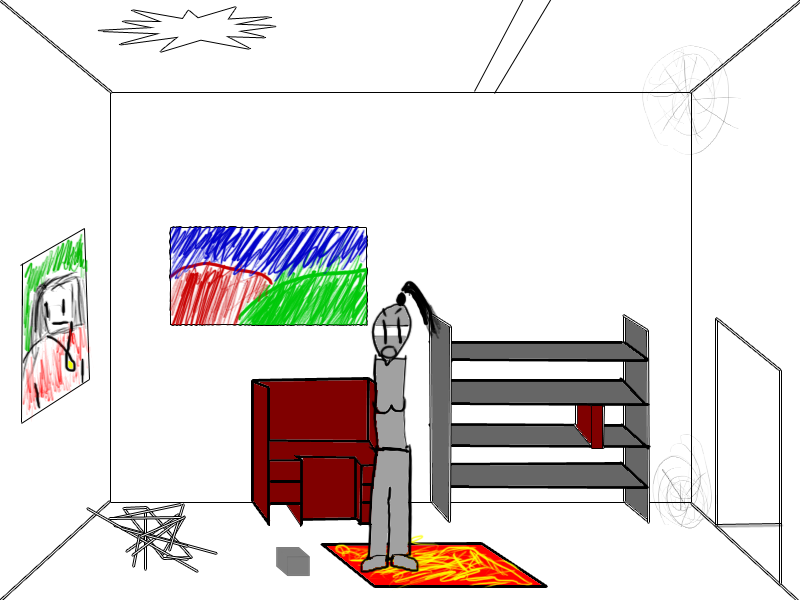You blink as you (a girl), clad in your loose grey ROBES stumble about for the moment, your bare feet standing on the cold steel floor.