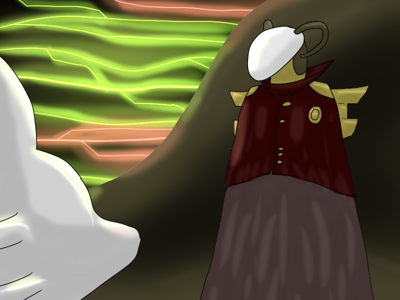 "I don't know exactly what created you, per se, but you exist only to serve two purposes. To gather the things the Shatterer requires, and to provide form for its entrance. When you have everything you need, Nyx becomes an obsession of yours. She's involved in this process too, I believe. You merge either through trading a simultaneously lethal blow, or merge in a... different sense, if you'll excuse me. And from that, the Shatterer is born into the world for the rest of the world's very, very short lifespan. I've seen this happen in different permutations. One time it was just a very enthusiastic handshake. You both seemed very surprised that time."