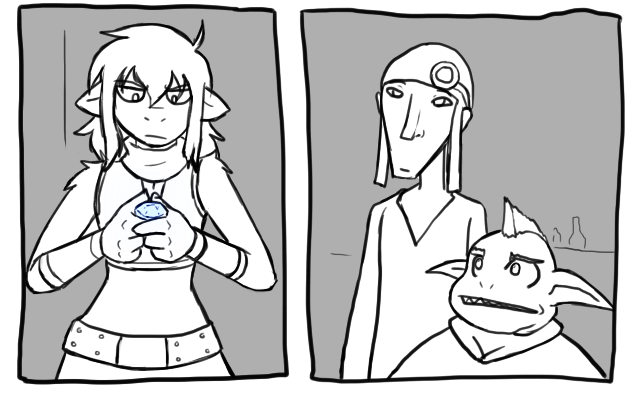 "Well, since that would take the heat off me... They don't have much presence here, but I wouldn't go flashing the rock around, unless you're lookin' for trouble. Word is they have a lot of higher ups in Arkram'sul, but a lot of them roam around lookin' for artifacts, magic weapons, anything that you could use to start some shit, so watch your ass."
