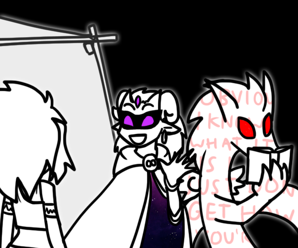 "Ooh. Giving yourself time to reflect and get objective again, without the whole discontinuity thing you'd get from just dipping back in here? Tricky. But possible. Or, could kind of... imbue you, with the objectivity that suits an eternal immortal whose existence is beyond the span of ages. Like me!"