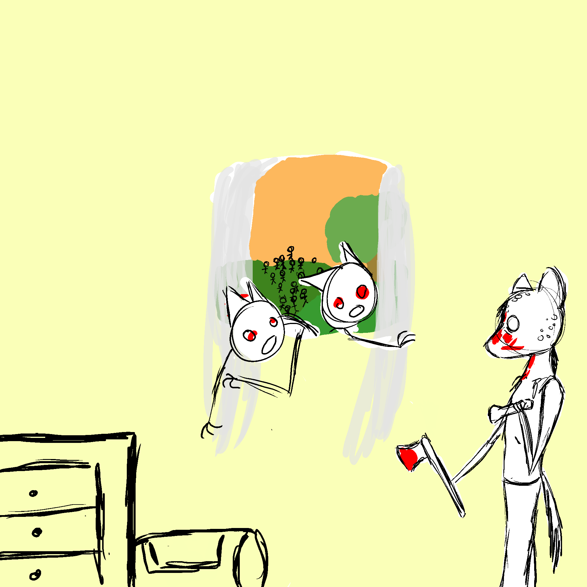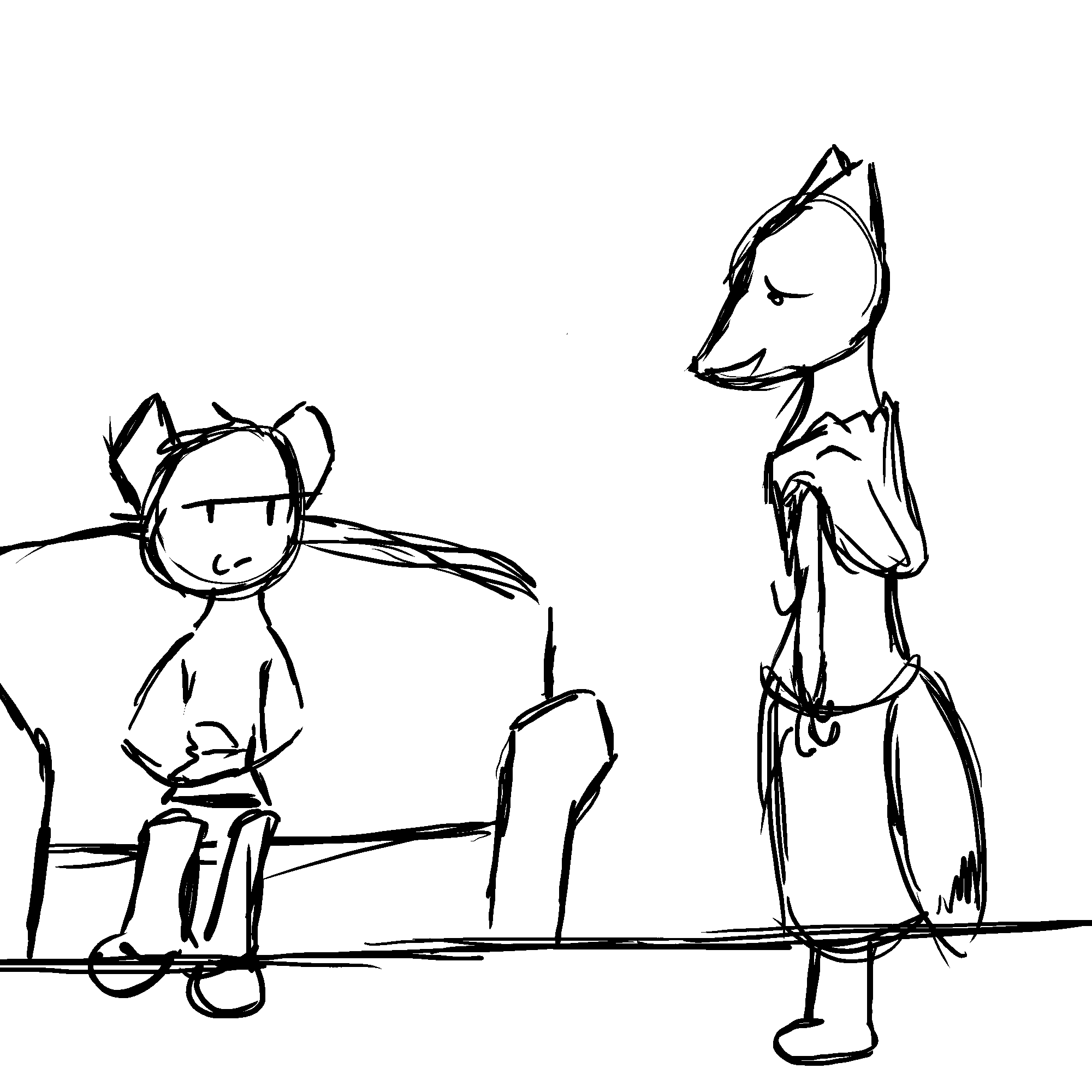 "Hey! I dragged him to safety, made him his own meal, and brought him down a bed. I think he'll be fine with making me something. And...A few days before this all started. It began as whispers."