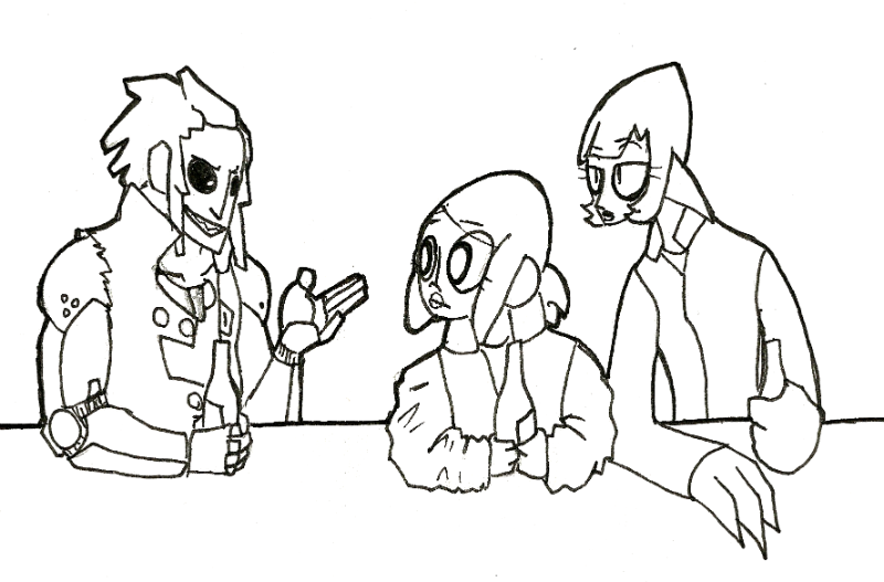 You walk over to the bar and grab a seat. He orders up three beers and slides one your way. He even had the courtesy to get one for Marilyn. Regardless, you still keep a cautious attitude.