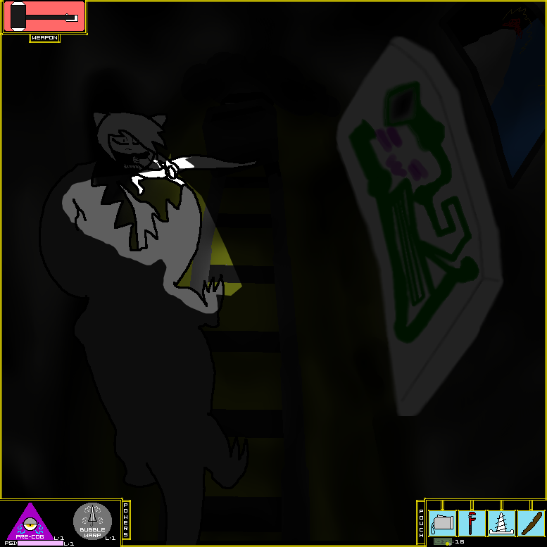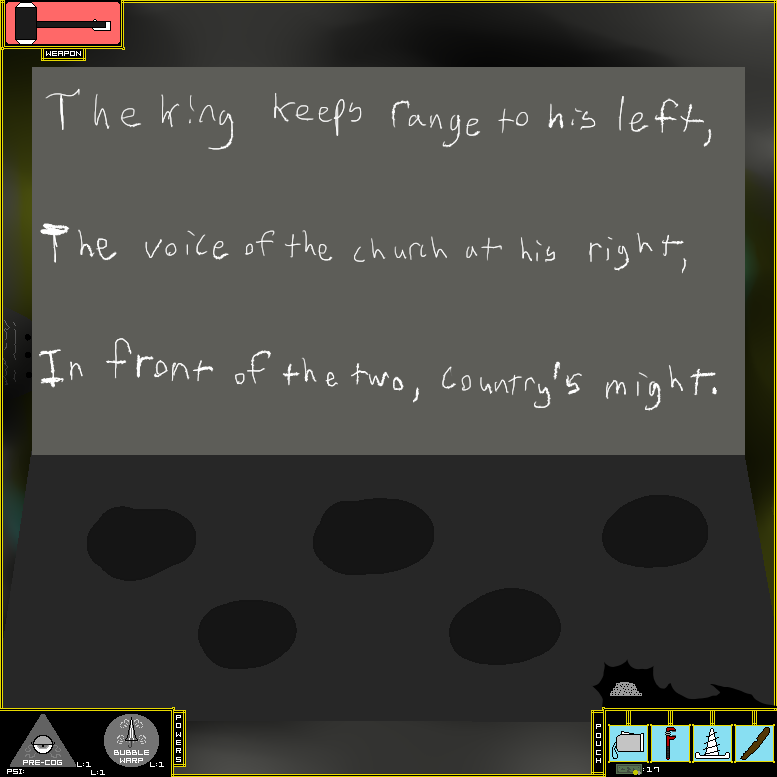 >Head back, dig around in the water with the stick. I think I figured out what precog was telling us; the triangle thing that opens the portal is in the water.