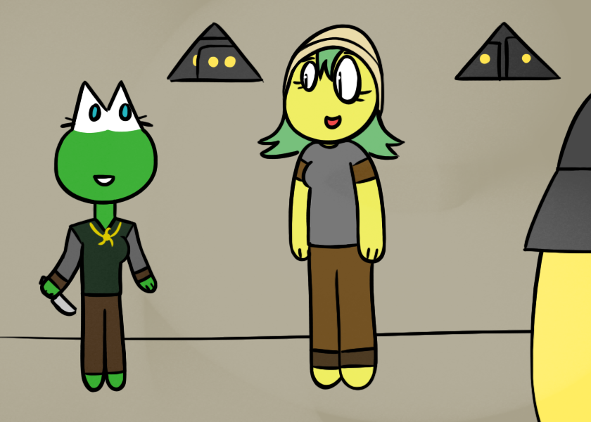 >”ALRIGHT! Here’s what’s going to happen, you two: we’re going to send messengers to each of the three cities in the region to inform them of a possible threat by the name of Dyda, and to see if they’ve had any encounters with our horned buddy-buddies. We’ll also set up some extra archers here to guard the walls and send out scouts to watch the cave’s entrances. The ideal thing would be to find out where Dyda Empire is located. So… okay, are you two up for an adventure? Because if anybody is going to successfully infiltrate these bastards, it’s you two. Uh, and maybe a couple of others.