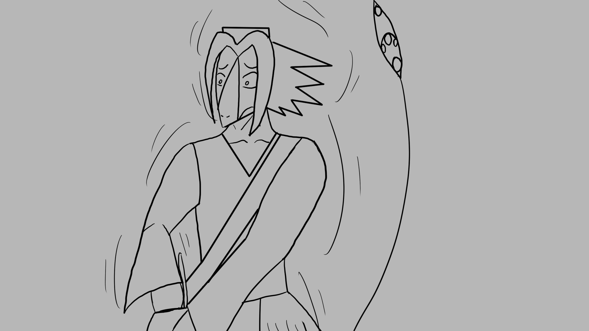 Aruuchi immediately moves behind me and snarls, saying "What are you talking about!? My family's here!? Where are they!?"