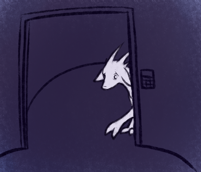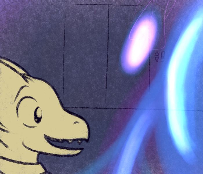 Whatever you do to act, you must get through that door before it closes without being shot. You have shown an ability to create light and sound, but how strongly, with how much control, and how far away? Could you create a sudden brilliant flash of light to blind the small Creation aiming at you, then dim yourself so it can't see you, dodge to the right and slip through the door after it fires?