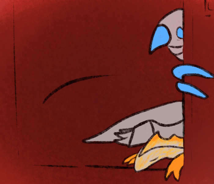But if you can't do any of that, you'll just have to dodge right and forward as quick as you can and squeeze yourself through the closing door near the feathered Creation so it'll provide some cover from the small one's shots.