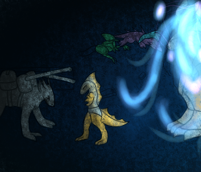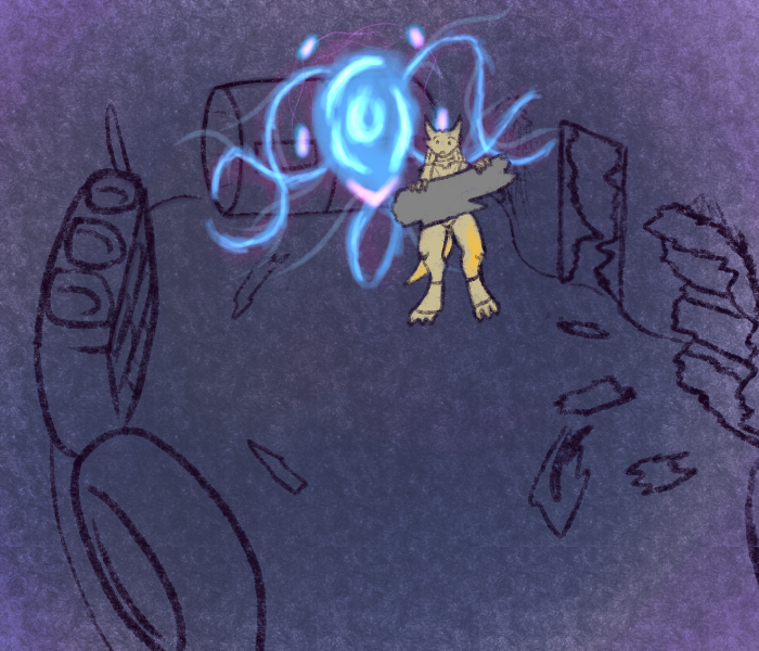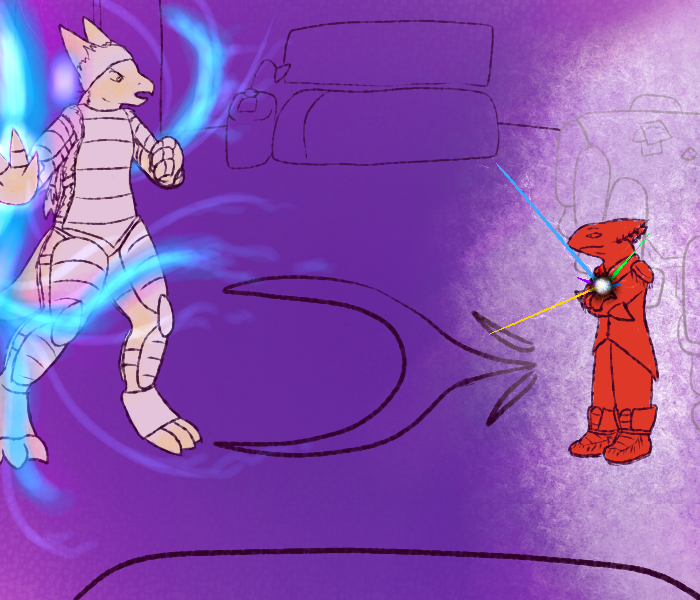 Now, the hostage plan looks to be about the best option right now, but it hinges greatly on how far these Creations will go to keep you caged before they start aiming to destroy you instead. A good indication would be if they try to shoot you through the feathered Creation, but even if they don't fire you need to know more, for they may be gathering their forces instead. You'll have to look into the mind of the feathered Creation, but only if you can do it without damaging it, without it knowing you did or being obvious about it to onlookers. Look for its orders and protocol, what it knows of how its comrades would react, and what capabilities they can bring to bear against you.