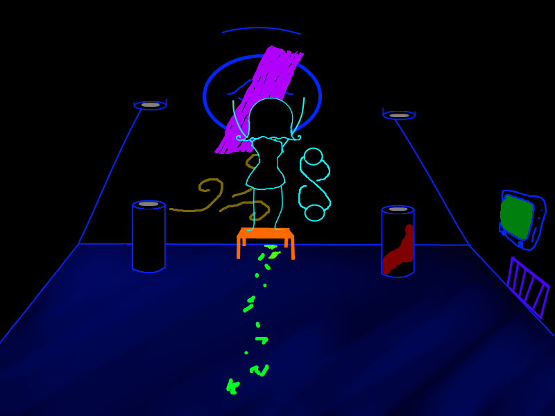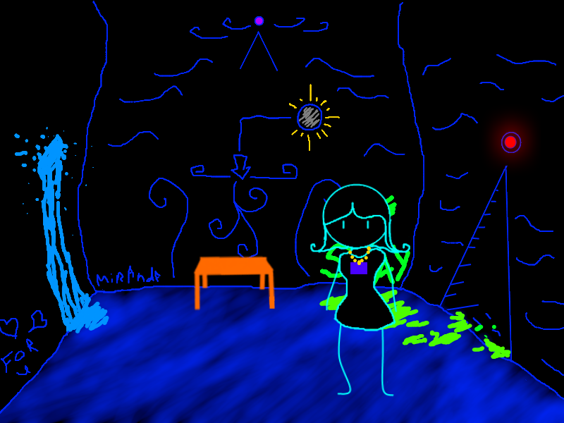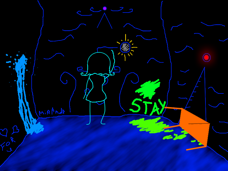 MIRANDA is written on the bottom left of the wall. I think I vaguely remember someone named Miranda...She was a hyperactive little kid, always laughing and jumping around. God she annoyed me.