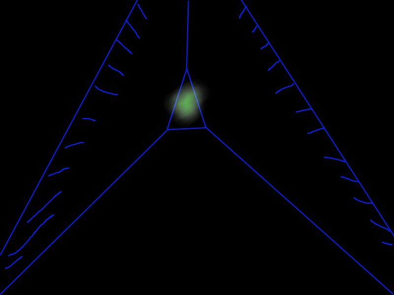 The east wall is covered in little cracks, and the crevice. The hot round thing above the crevice is spherical. I believe it must have been a lightbulb before all the light was taken away.