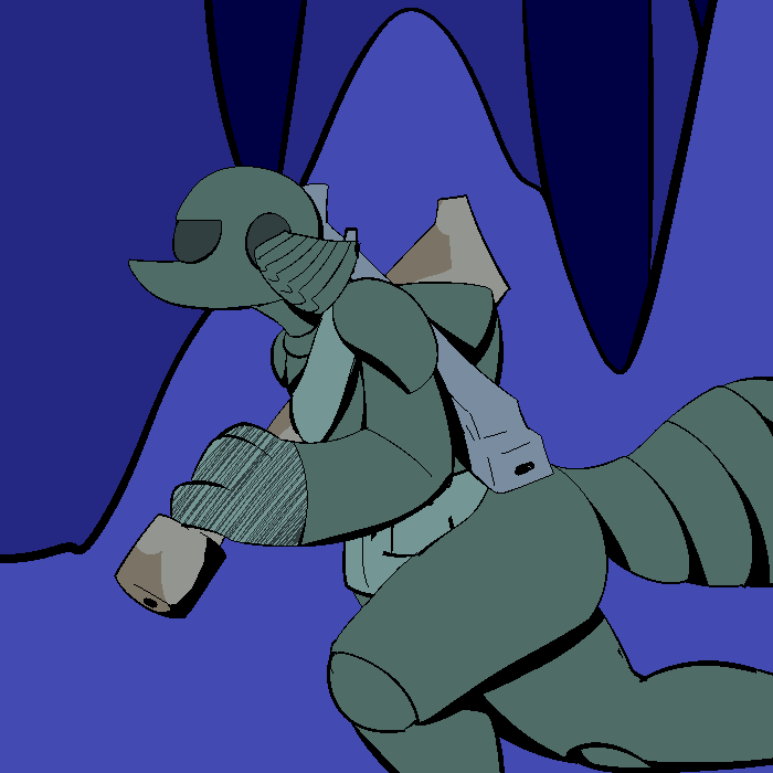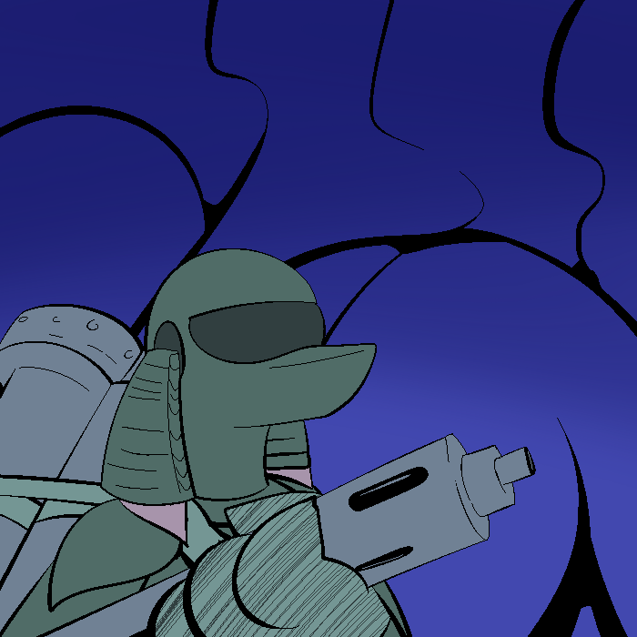 But that's how Rokoa thinks! On the inside, she's still a tribal, from a time when every member of a hive had to be strong, and able to take care of themselves, since any of them could die at any time or be forced to move. Independence, raw toughness and strength are how she works. But Polo is civilized, and being civilized means accepting that one person can't do everything, counting on others. All the people who trained her, the people who make the machines that make her equipment, the people who give her information, people to do what she can't do. A sniper never wins a war by themselves, but they find the right spot to strike so that everyone else can do their job better. And that's how Polo works! By learning to cut herself from her species' links, she opened up new ones, dumping prejudices not only on who to hate but who to like. She befriended a voklit, a predator, dealt evenly with salikai and allied herself with members of a hive that was enemy to her own, and all helped her achieve victory in the end. And Rokoa would never even have thought to do it. This one certainly won't have thought it, nor the salikai who made her. If Polo wants to win, and wants to stay herself, she needs to use power the like of which Rokoa wouldn't even think was an option.