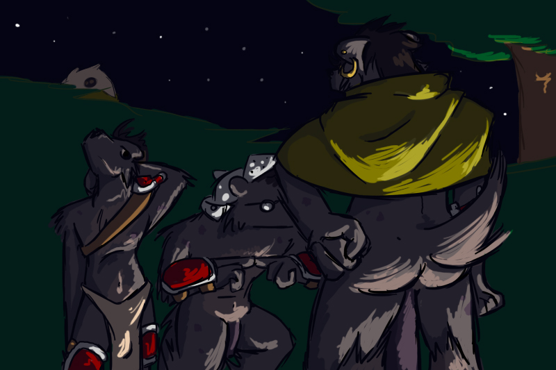>Rozalin, Rolland and even the gnolls are impressed by the tale, though liver seems skeptical.