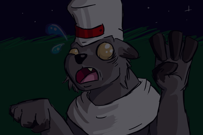 Bacon - oh Masters! I... I noticed mistress Eadoo was crying this morning so I snuck away. I asked the entire camp if we could at least pretend to get along, in hopes to make you feel better~ Hehee... that Roland and Liver don't seem to care much for each other but ... the rest are trying... And I made ground pork and potatoes~!