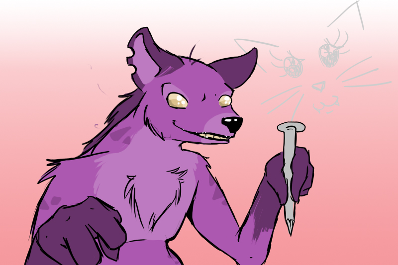>Shenzi keep shaking, looking shocked and confused, her eyes closed tightly.