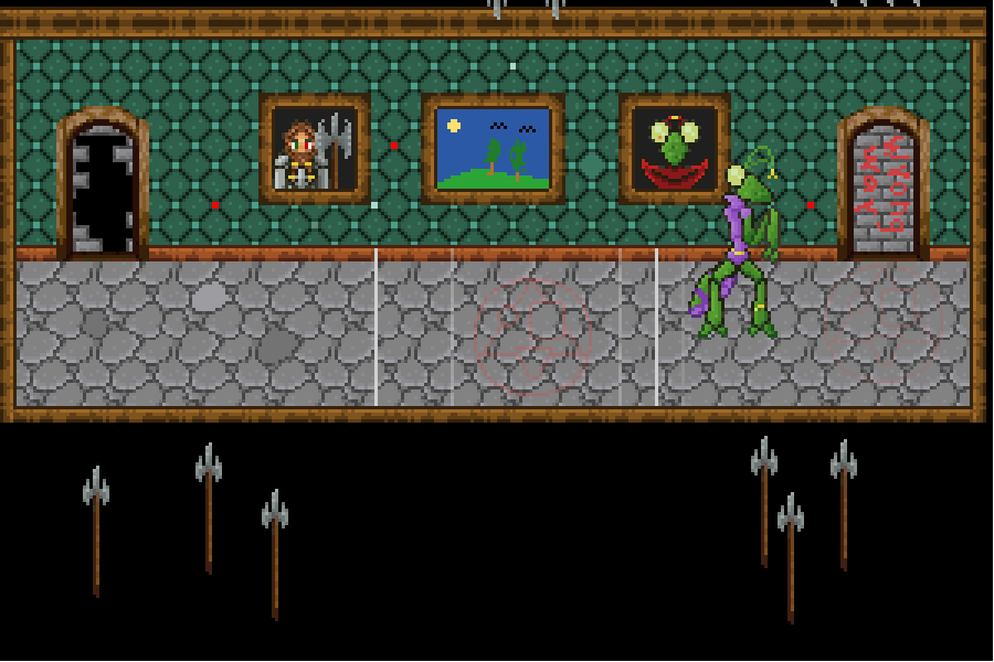 >Maybe try checking through those undead-themed double doors.