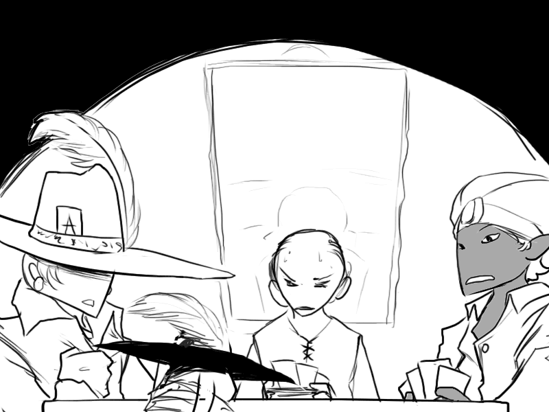 >"Tsk! You can sit on the ground for all I care. Come on, place your bet and draw four cards."