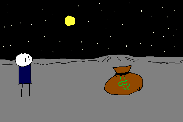 You are A GUY, I guess? And you're on the MOON or something but that's not important. There is a BAG OF CASH? here. What do you do?