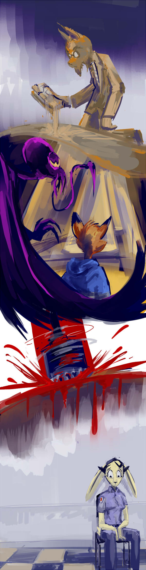 >"I don't know, Lynwood. He's lost a lot of blood, and has two bullets stewing around in his guts, but it doesn't smell like he's gone septic. The only reason he's still conscious is because of the poison. He's going to need surgery and a blood transfusion if he's going to survive the night."