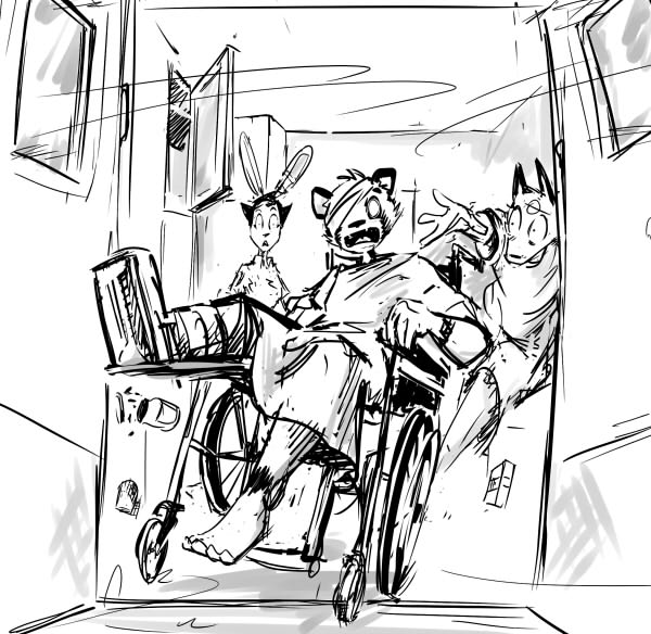 >"See if you can get it elevated. And check if he has any of that quick clot stuff!"