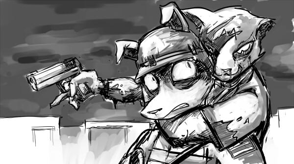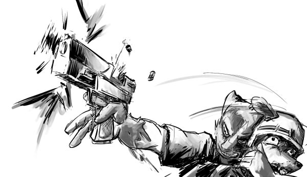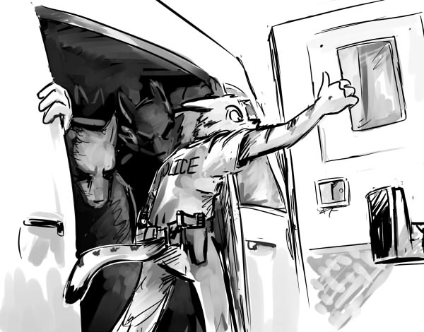 >But before they can close the distance, the cop wrenches his arm free with a violent crack.
