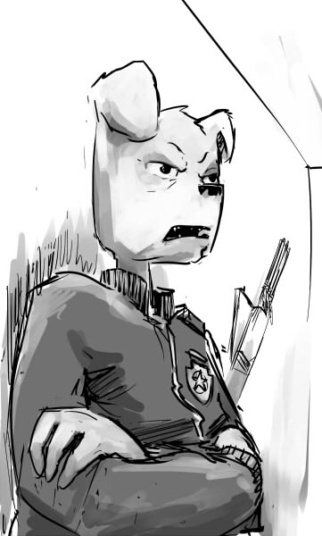 The sheriff nods, but scowls.His swollen jaw seems to be stuck in a perma-scowl after Mary slugged him.