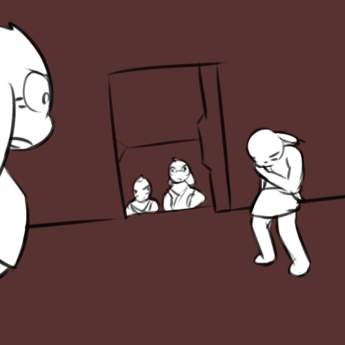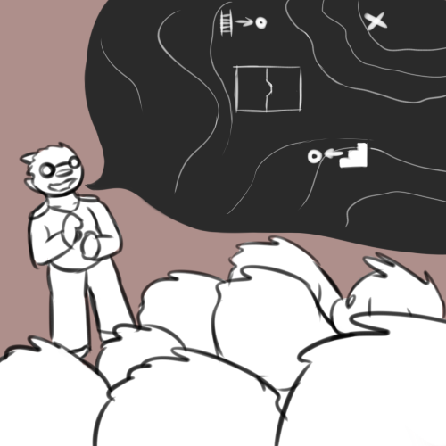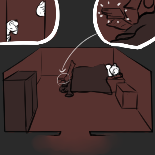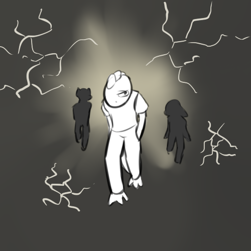 >"Well, there's a bathroom and the generator room. Everyone else should be down there by now, but honestly I don't fucking know when it comes to these people."