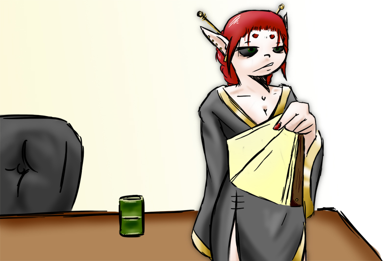 Banzai - Liver is right demon, the pelts we stole would sell much better beyond the forest. but we can sell them here at a fair price, perhaps three or four gold pieces for the lot. We could make six to the elves of AnorOtawa, but the princesses castle is clear north from here... Perhaps it would be wise to stock up on cash, I myself have some to spare, Quite a bit might I add, and would help my mistresses voyage... And if you're looking for a doctor perhaps we're in luck, only just a few days ago an alchemist was here, maybe, just maybe she's still around.