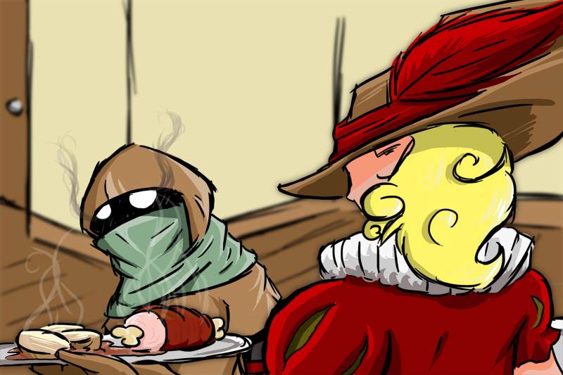 >Eadoo, Shenzi and Creep gather down stairs where the party is being held. It is merry and folks are celebrating their new friendship and the birth to be of their new kingship. Bacon, preferring to be of service, helps the chefs cook meals for their guests, while the other gnolls mingle and drink. William though, ever antisocial simply eats a bit and help you keep order, acting as your hands.