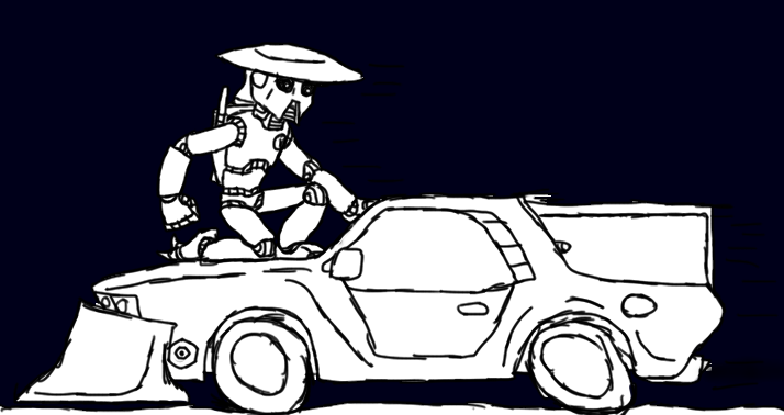 2. It appears to be a firebird car, you think, it has a large storage trunk on the back and the windows appear to be metal slates with holes cut into them. In the back there appears to be a double barrel. Hm. Might want to look into that