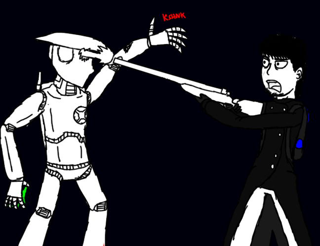 You sigh and pick up the arm and head down to Otto. You hand him back the arm and inform him of what "Snaplot" took. He sighs as well.