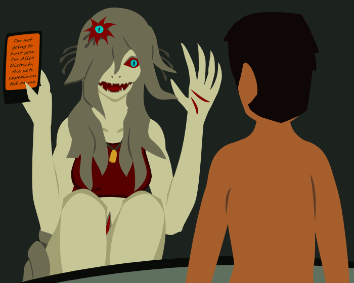 Yes, yes! It's horrible, it's horrible. That's why she has to do it now and get it out of the way. Alice doesn't want to eat Blake, she'll only do it if - no, never! She needs more control over herself so she has to eat the xotl. She has to be stronger so she has to eat the xotl.